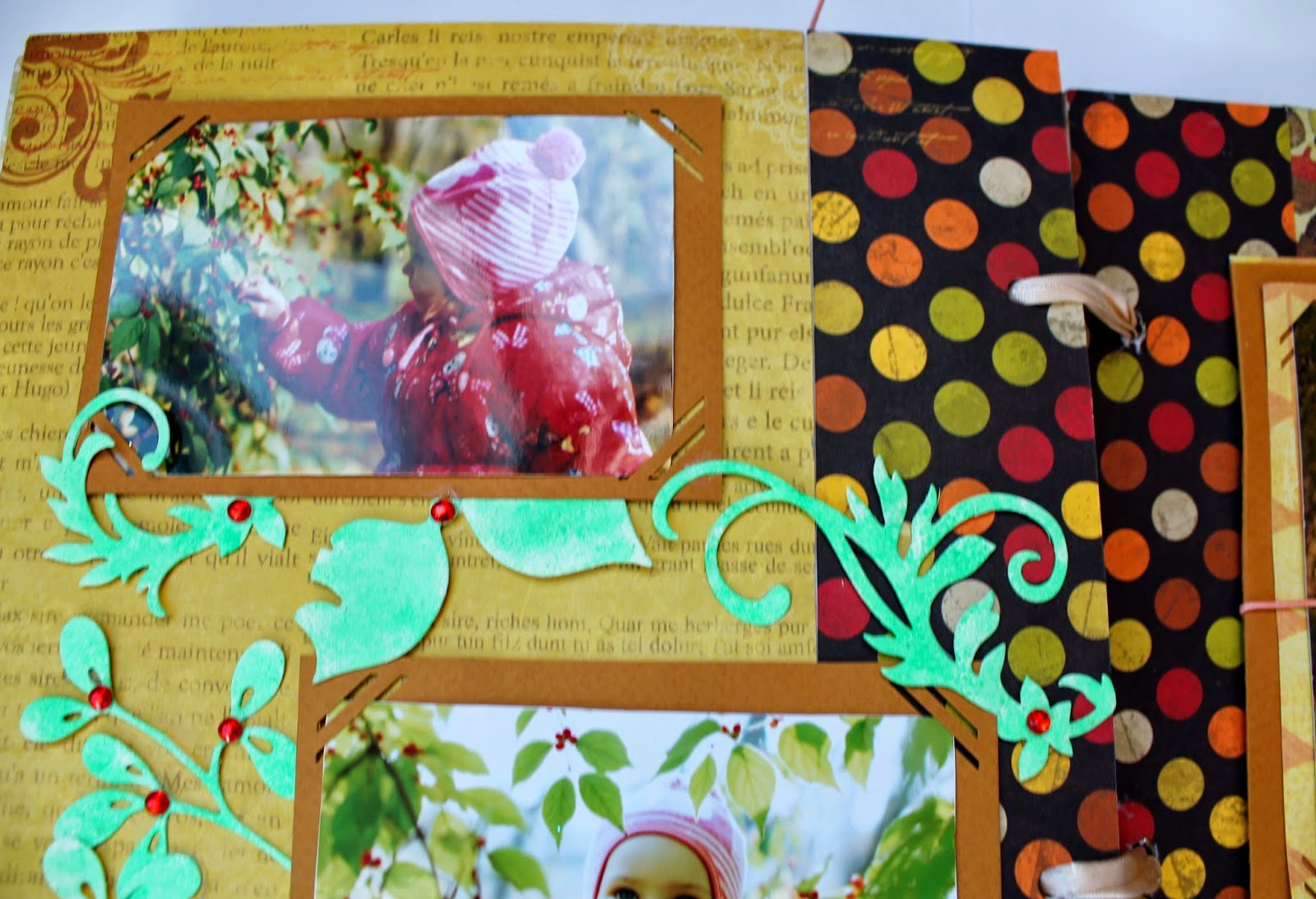 1 страничка. На фото дочка среди ягодок, поэтому в декоре добавила вырубных веточек и стразинки-ягодки